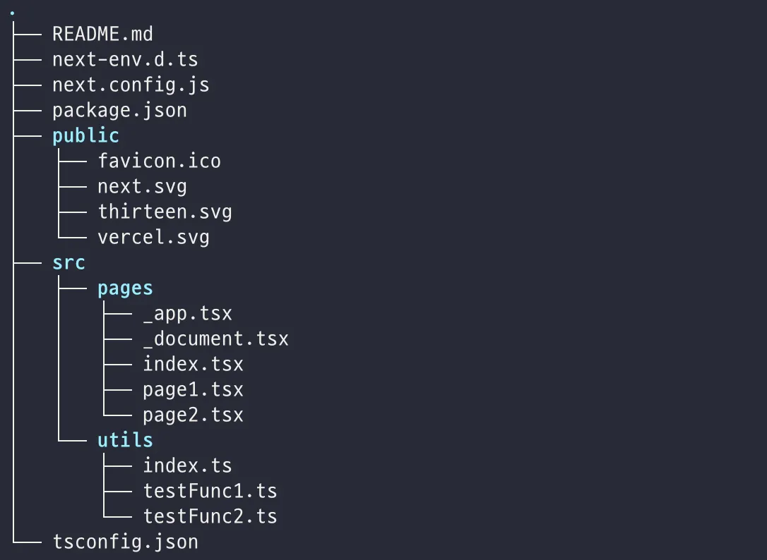 page1.tsx, page2.tsx 파일 두개로 나뉘어 서로 다른 case로 나누어 tree-shaking이 발생하는 케이스를 확인할 예정이다.