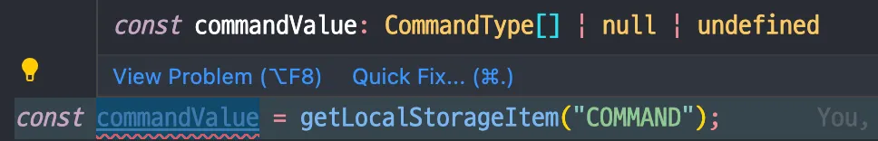 COMMAND키 값을 인자로 전달할 경우 사전에 정의한 CommandType 또는 null 또는 undefined가 자동으로 추론된다.